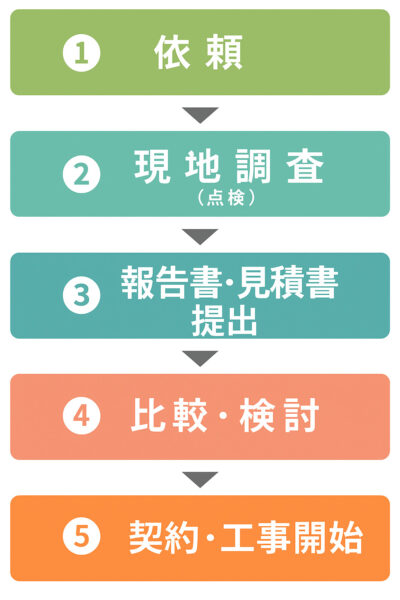 依頼から現地調査、見積もり提出、比較検討、契約までの流れを含めると、少なくとも1か月程度はかかるのが一般的です。