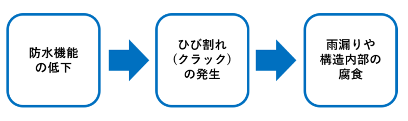 湿気が残りやすい状態が続くと、塗膜の劣化がさらに進み、防水機能が失われていきます。