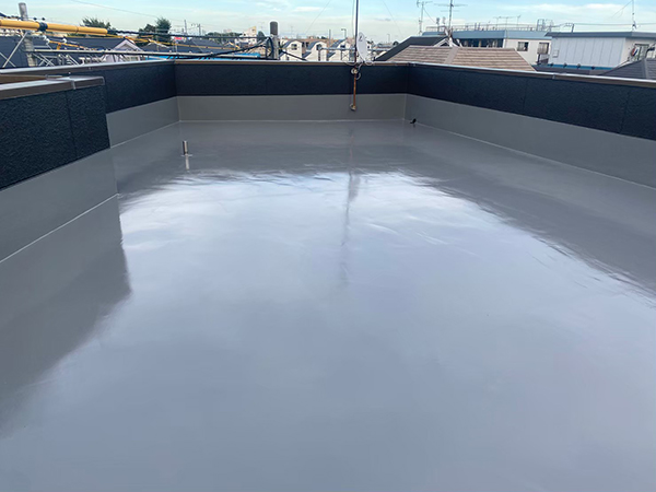 塗膜防水では、トップコートを塗ることで、紫外線によるダメージを防いでいます。そのため、防水工事とは別に、5年に1度程度、トップコートを塗り替えることで、防水性を維持することが必要です。