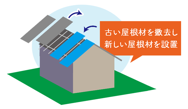 屋根葺き替えでは、既存の屋根材をすべて撤去し、新しい屋根材に交換します。