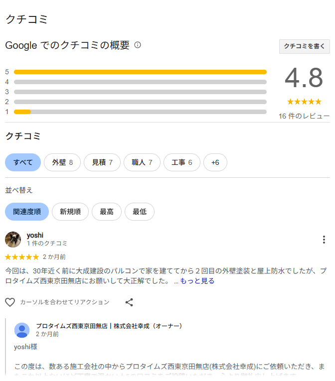 実際に、当店のGoogle口コミでも、