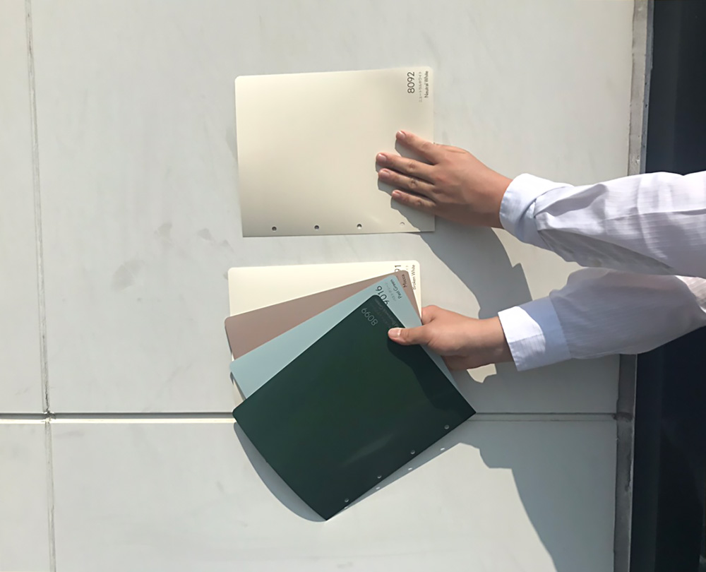 小さな色見本を室内で見るだけで決めず、必ず屋外で光を当てた状態を確認しましょう。